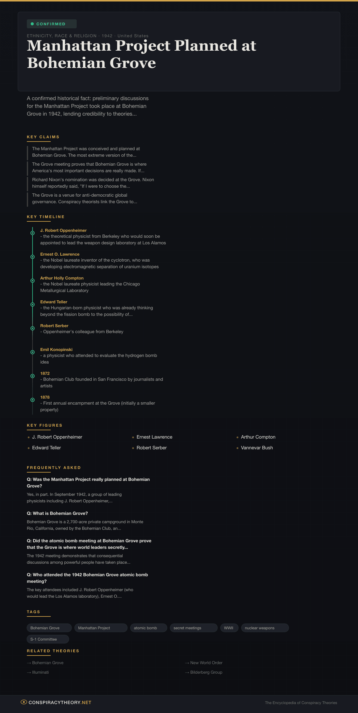 Manhattan Project Planned at Bohemian Grove — Conspiracy Theory Timeline 1942, United States