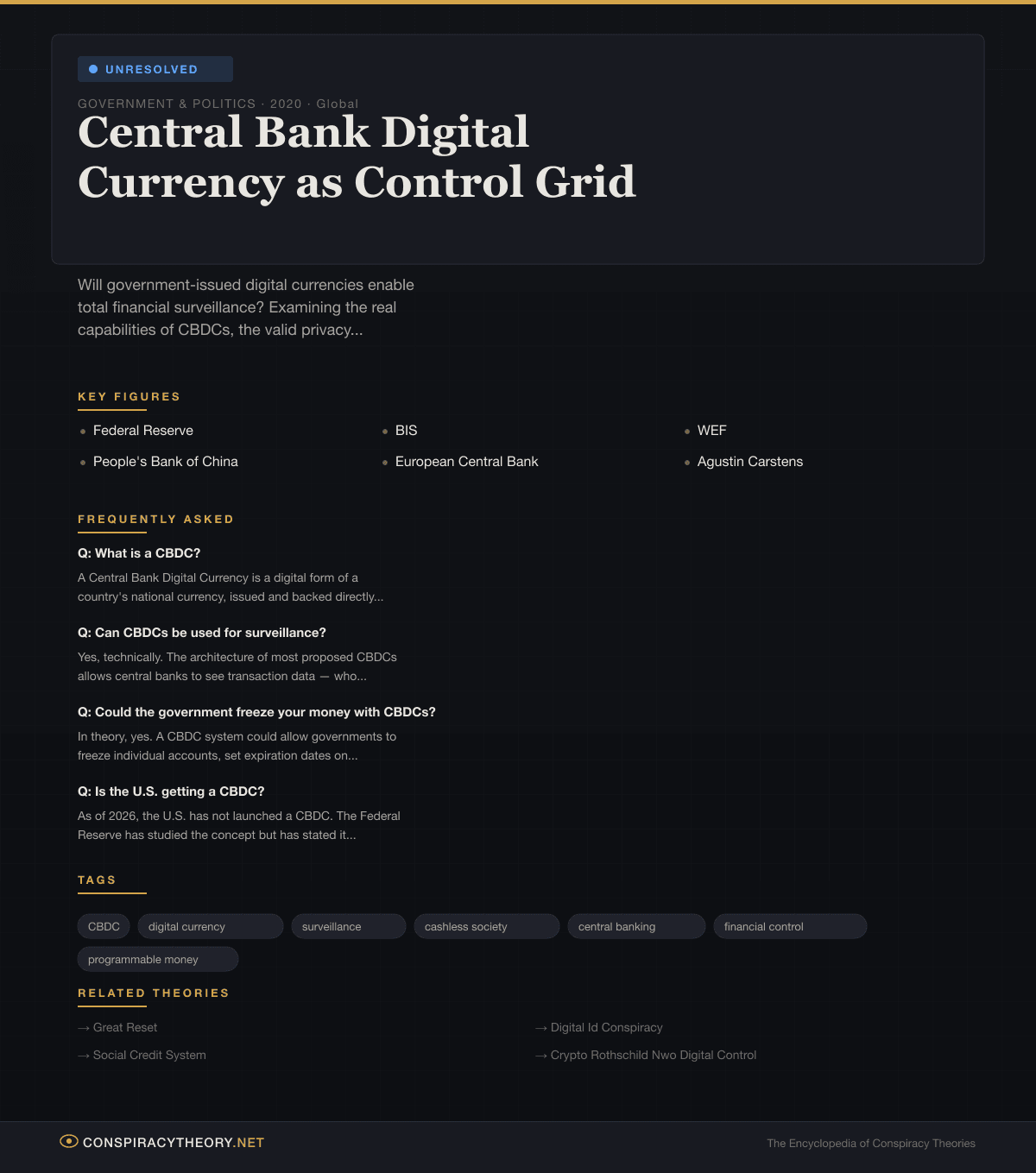 Central Bank Digital Currency as Control Grid — Conspiracy Theory Timeline 2020, Global