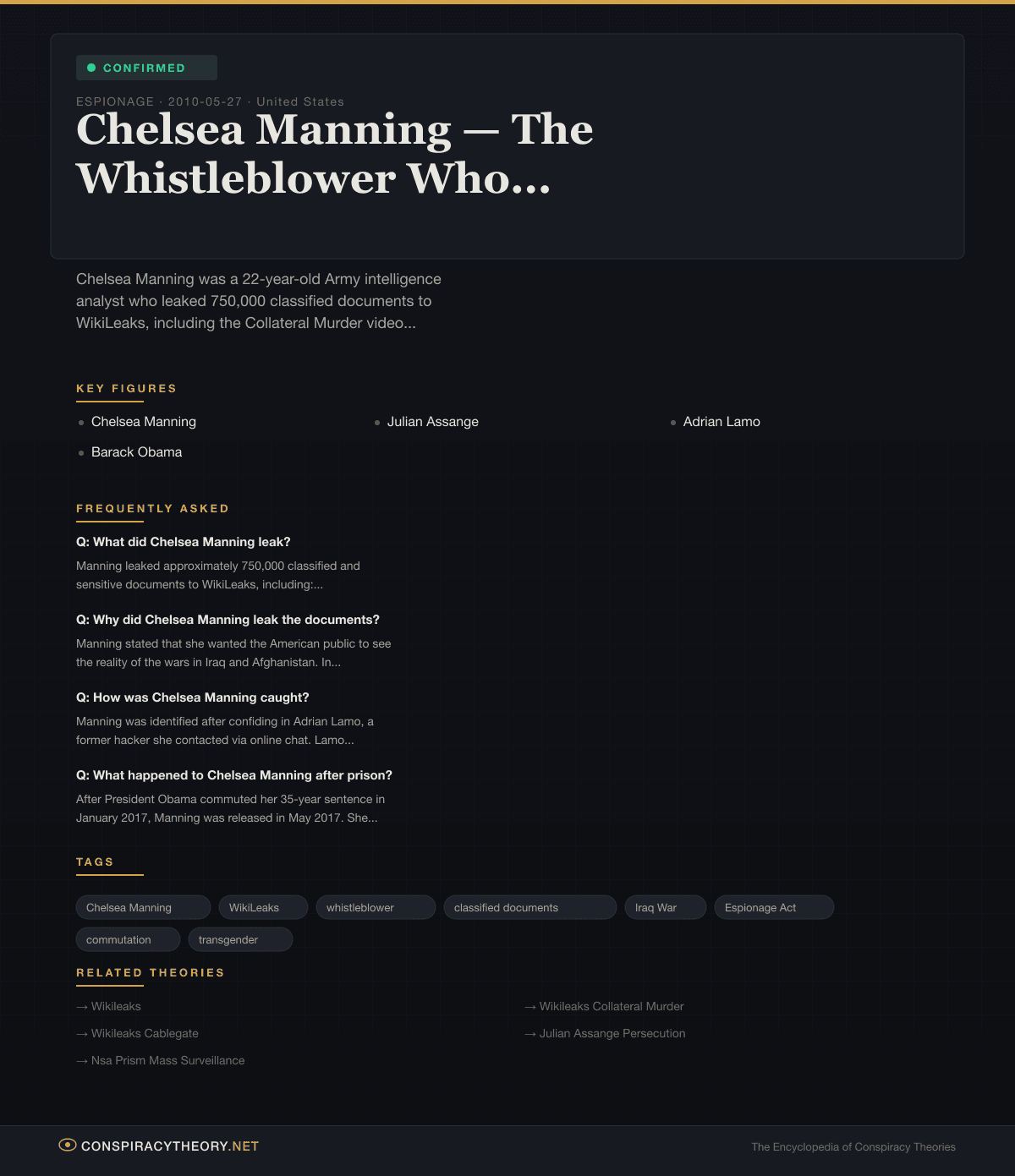 Chelsea Manning — The Whistleblower Who Changed Everything — Conspiracy Theory Timeline 2010-05-27, United States