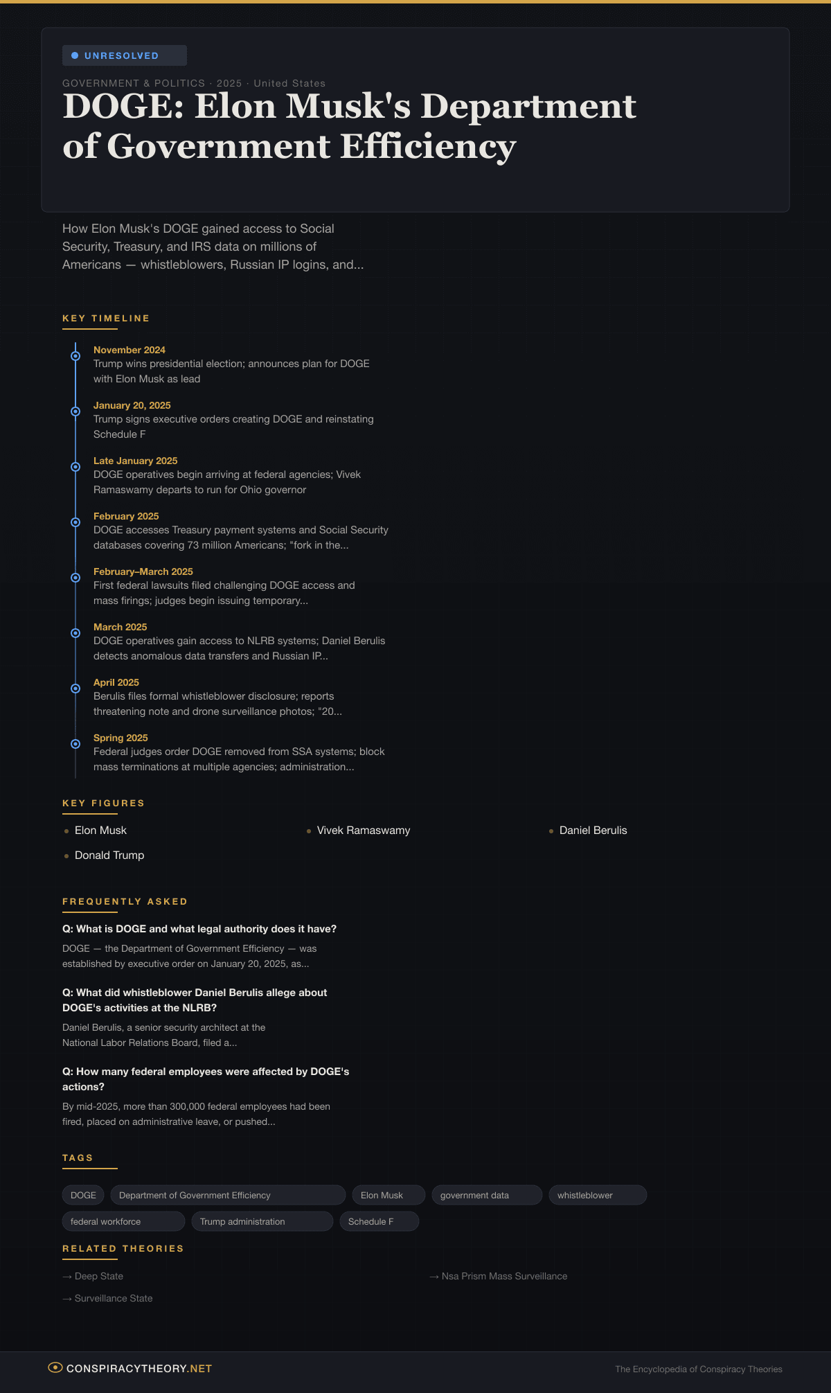 DOGE: Elon Musk's Department of Government Efficiency — Conspiracy Theory Timeline 2025, United States