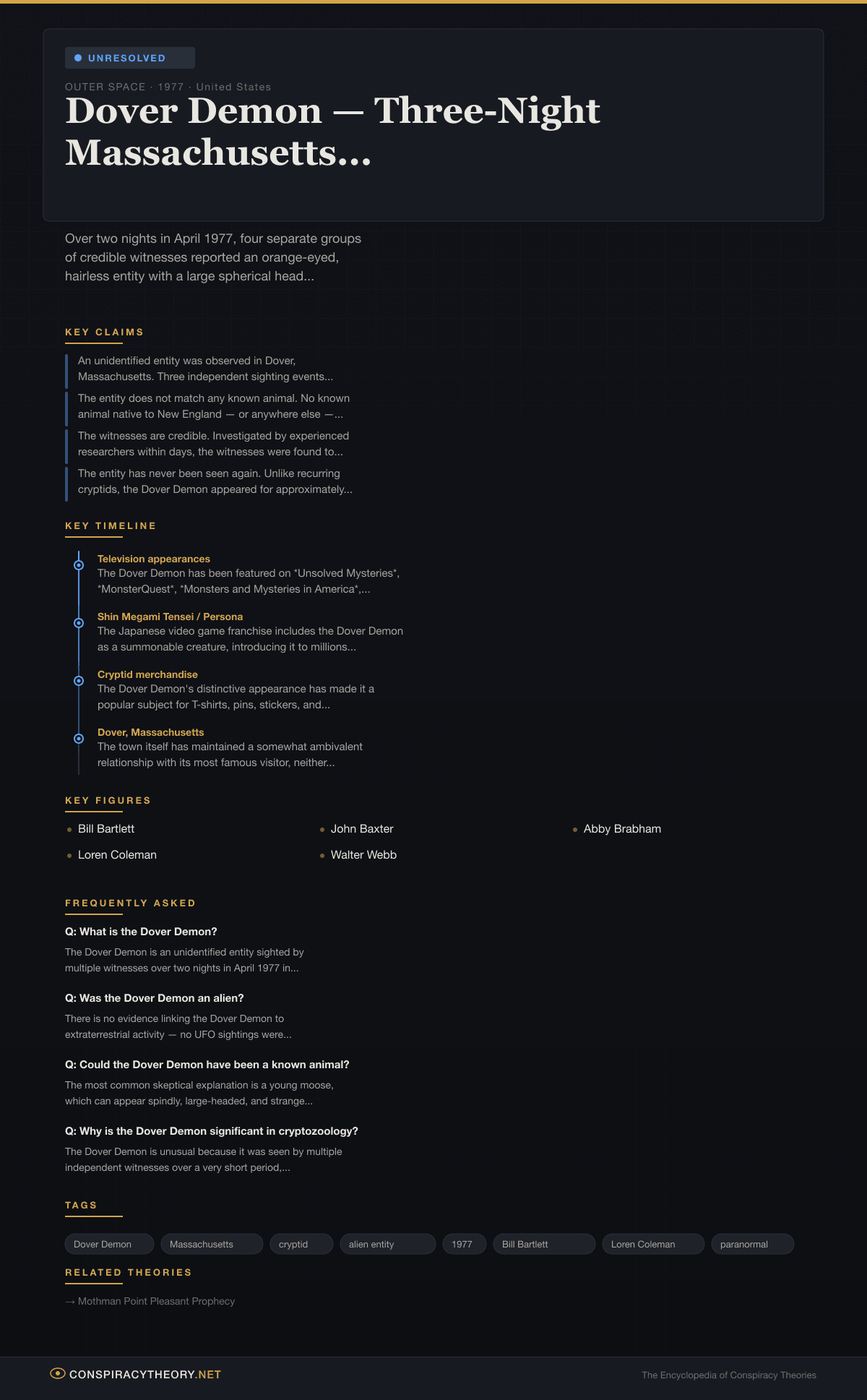 Dover Demon — Three-Night Massachusetts Encounter (1977) — Conspiracy Theory Timeline 1977, United States