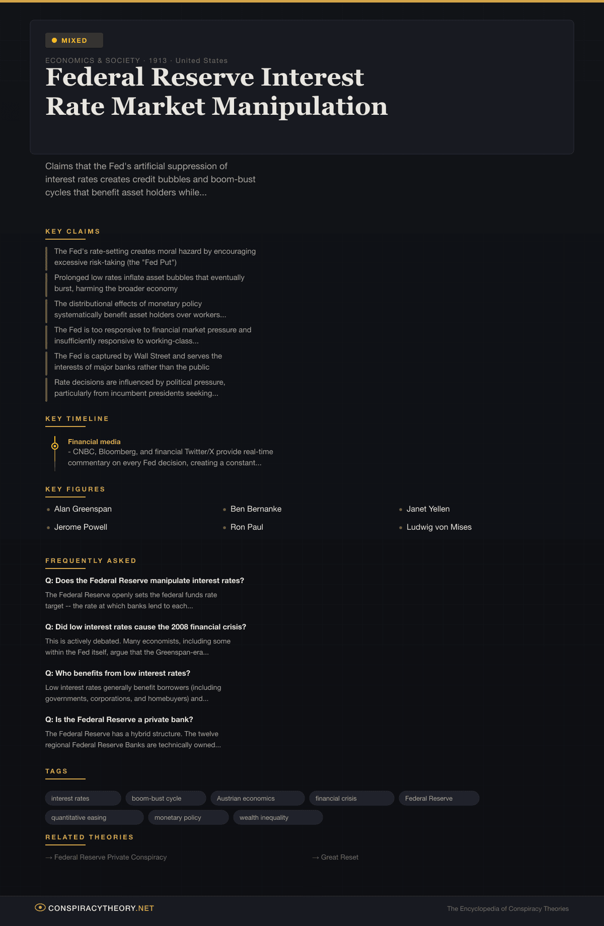 Federal Reserve Interest Rate Market Manipulation — Conspiracy Theory Timeline 1913, United States