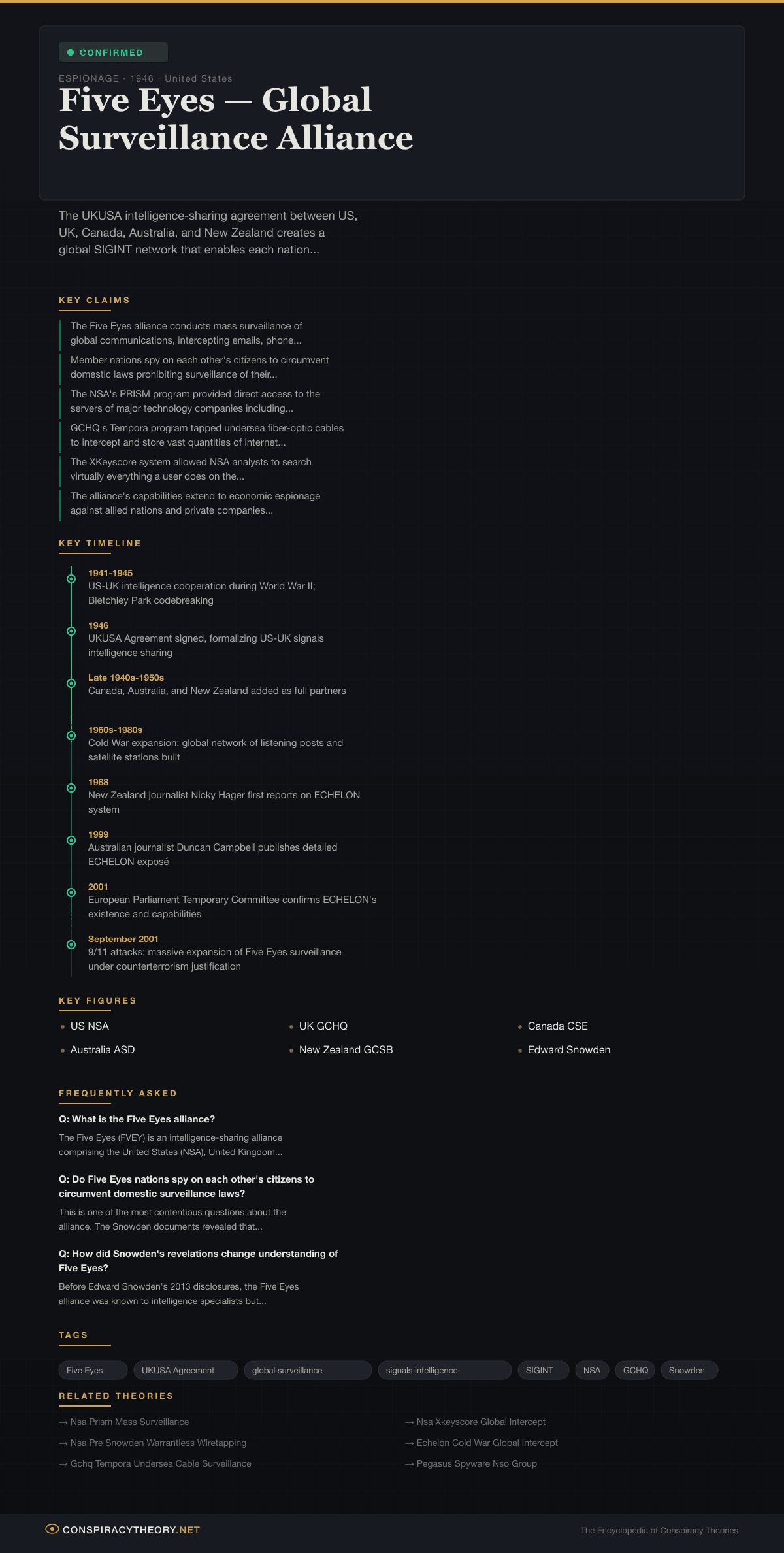 Five Eyes — Global Surveillance Alliance — Conspiracy Theory Timeline 1946, United States