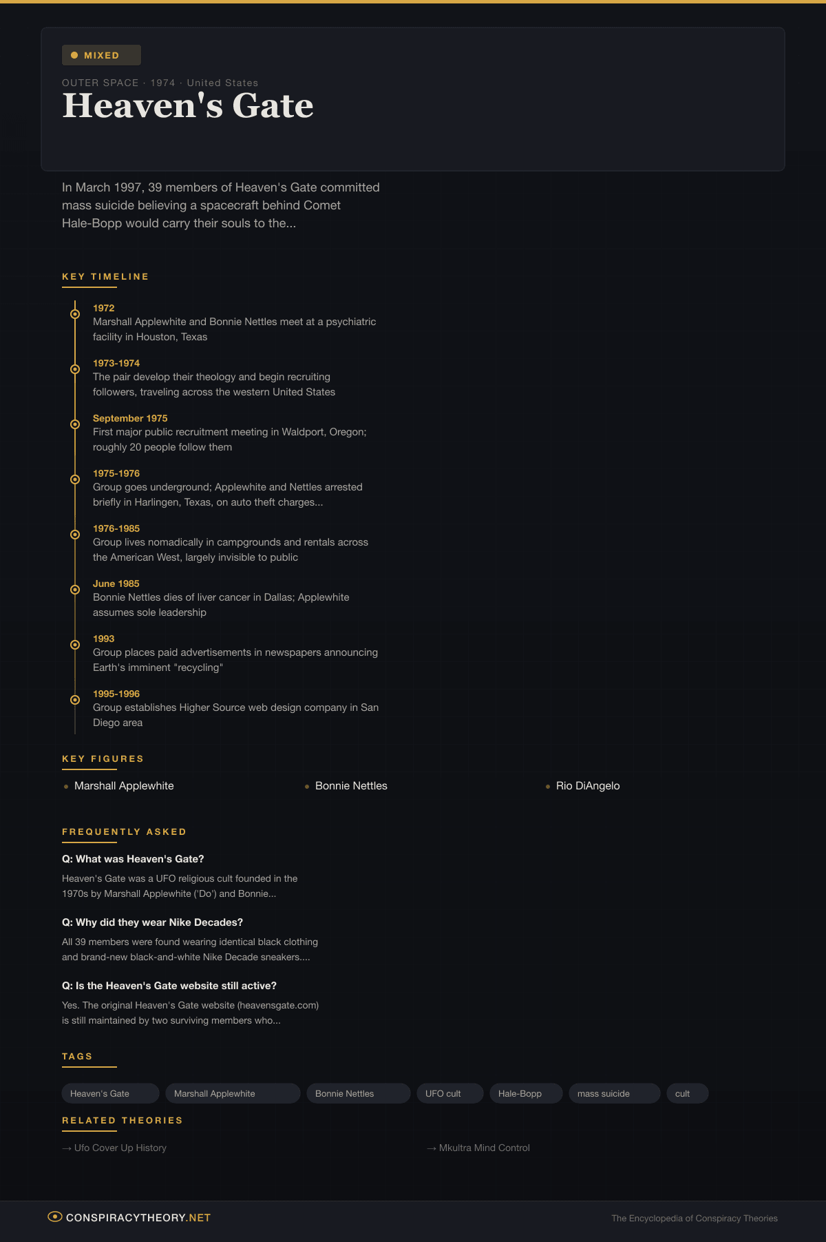 Heaven's Gate — Conspiracy Theory Timeline 1974, United States