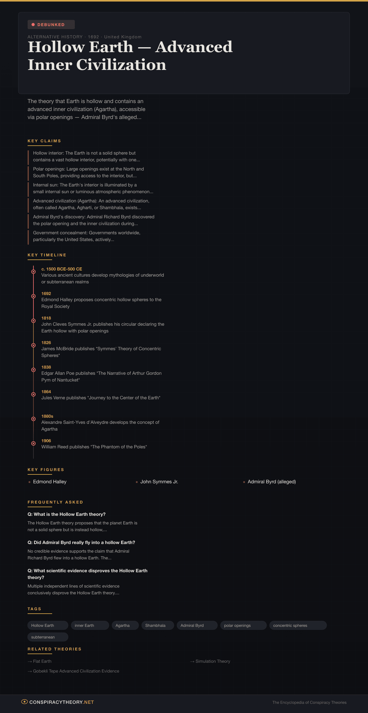 Hollow Earth — Advanced Inner Civilization — Conspiracy Theory Timeline 1692, United Kingdom