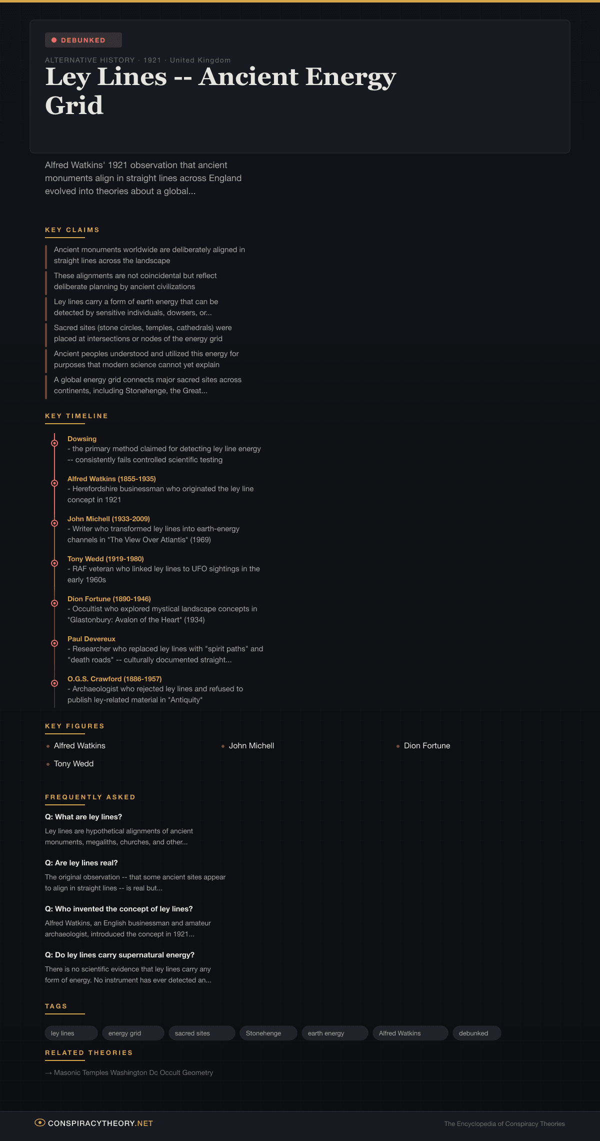 The ley line hypothesis — in both its original and energy-grid versions — has been debunked on multiple grounds: