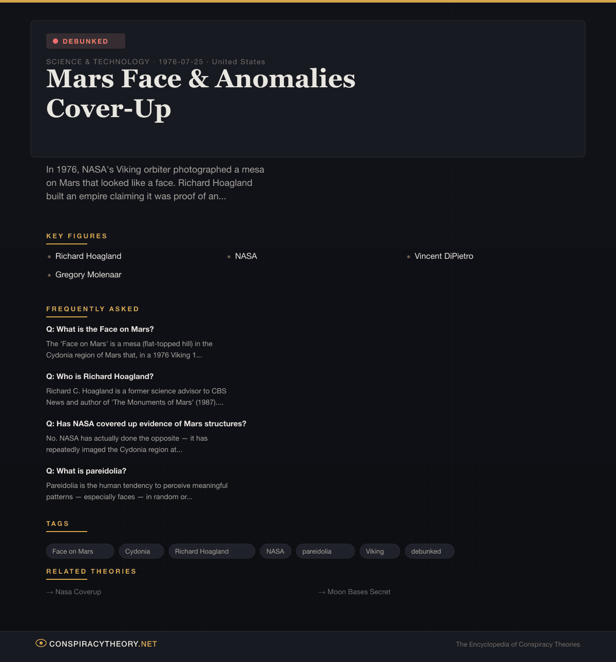 NASA’s press office, in a decision they would come to regret, released the image with a caption noting the “huge rock formation… which resembles a human head.” They called it “a trick of light and shadow.” They thought it was a fun curiosity. They had no idea they had just launched one of the most durable conspiracy theories in space exploration history.
