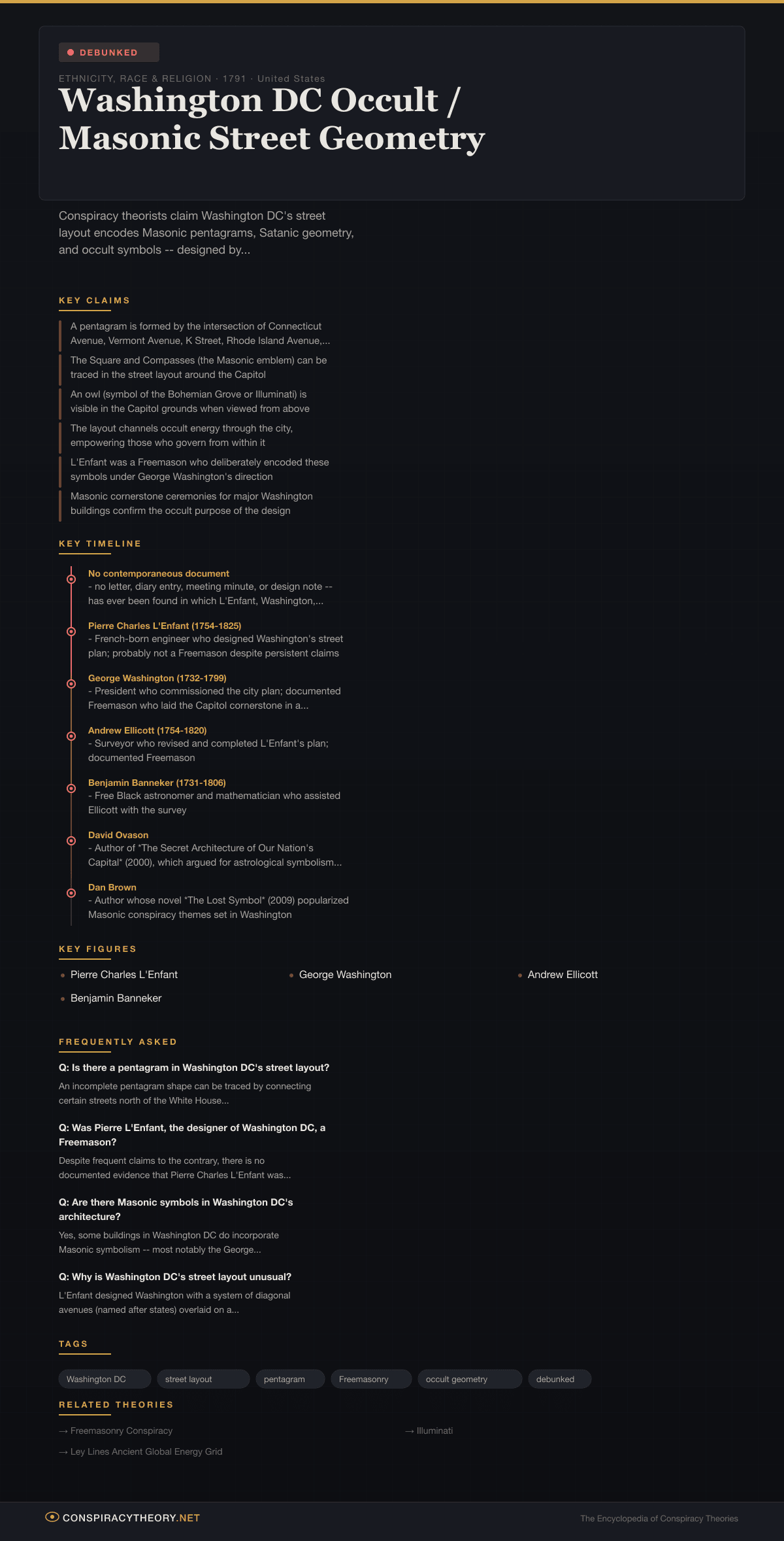 Washington DC Occult / Masonic Street Geometry — visual timeline and key facts infographic