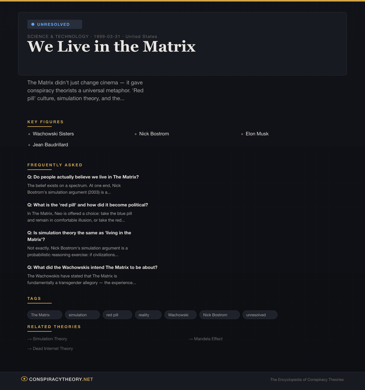 - Simulation Theory — The philosophical argument for simulated reality