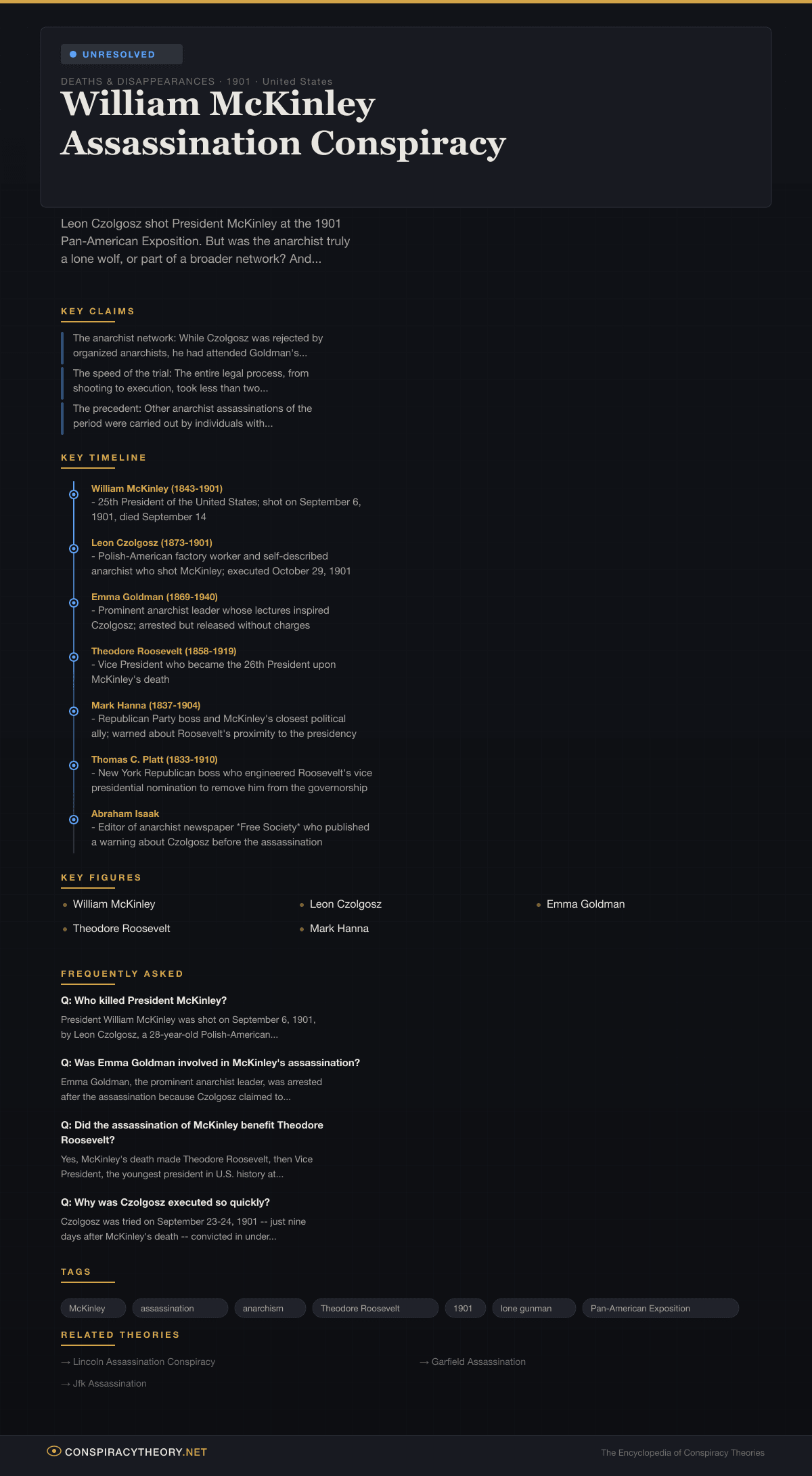 William McKinley Assassination Conspiracy — Conspiracy Theory Timeline 1901, United States
