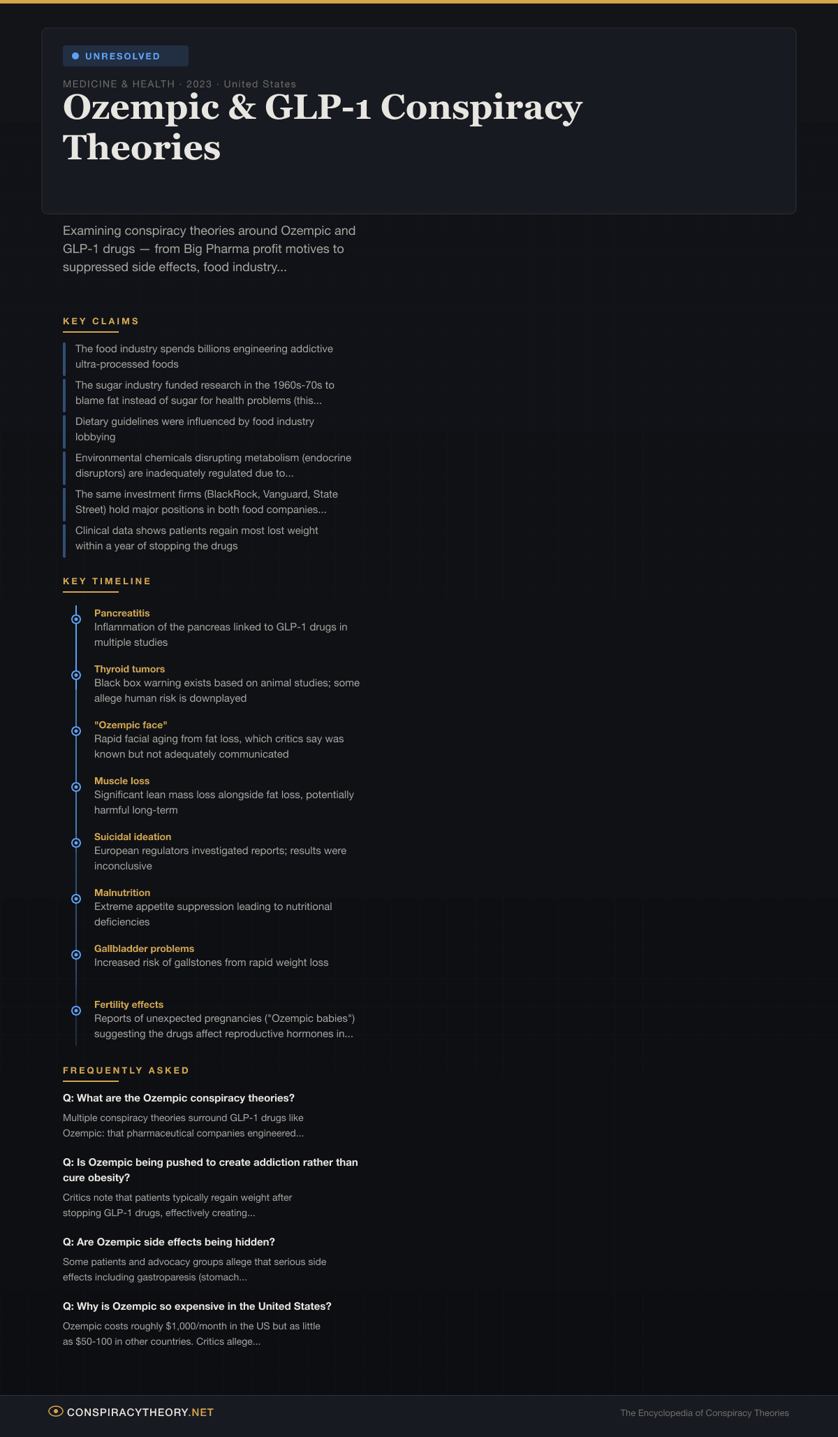 Ozempic & GLP-1 Conspiracy Theories — Conspiracy Theory Timeline 2023, United States