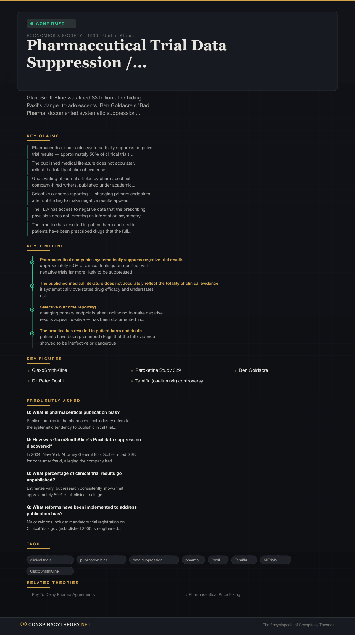 Pharmaceutical Trial Data Suppression / Publication Bias — Conspiracy Theory Timeline 1990, United States
