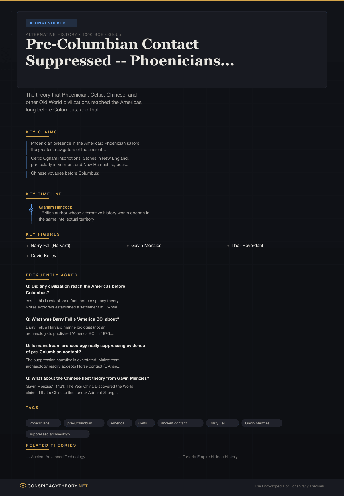 The conspiracy dimension enters when proponents claim not just that pre-Columbian contact occurred but that mainstream archaeology is actively suppressing the evidence because it threatens established narratives about European discovery, Indigenous peoples’ origins, or academic careers built on the conventional timeline.