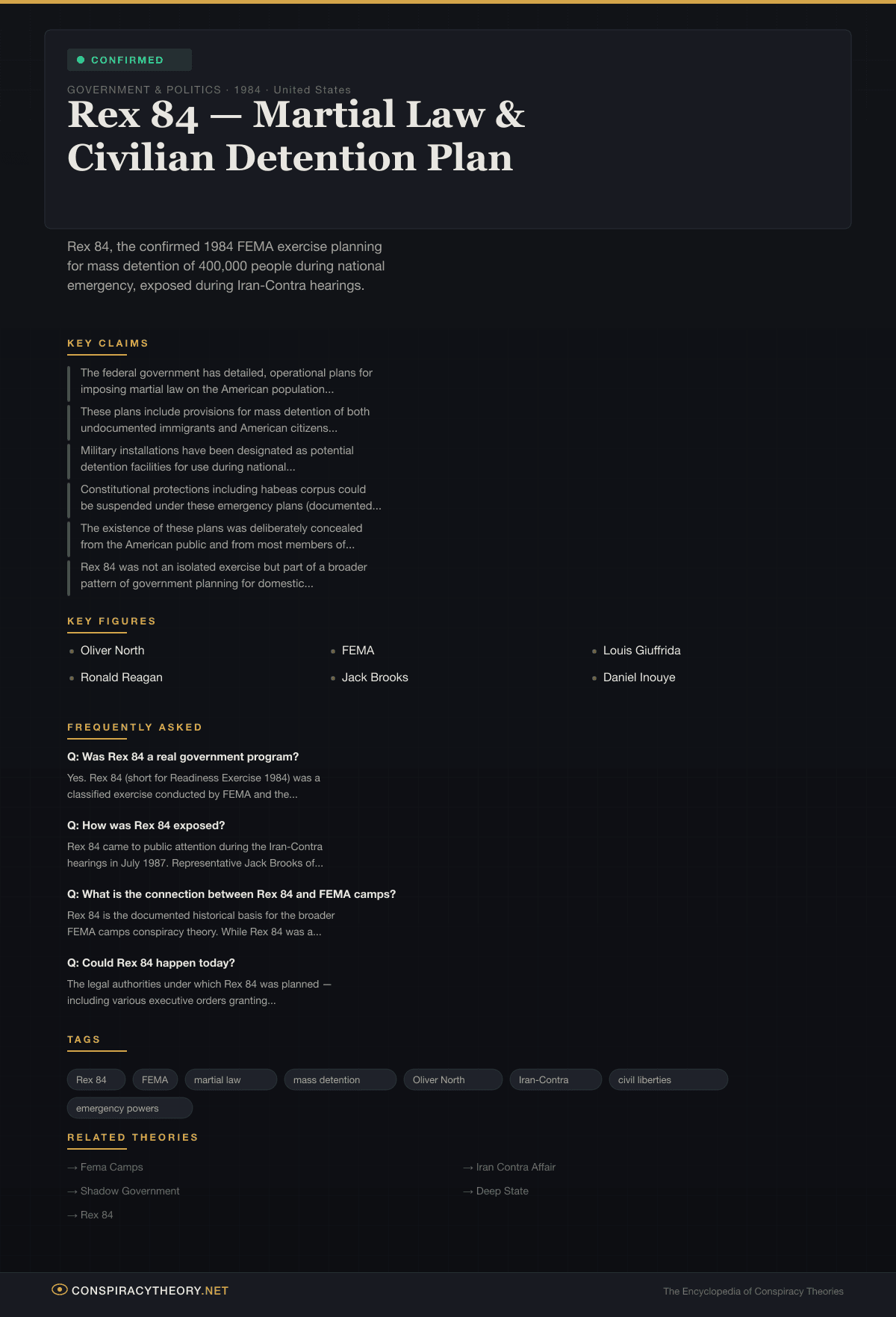 Rex 84 — Martial Law & Civilian Detention Plan — Conspiracy Theory Timeline 1984, United States
