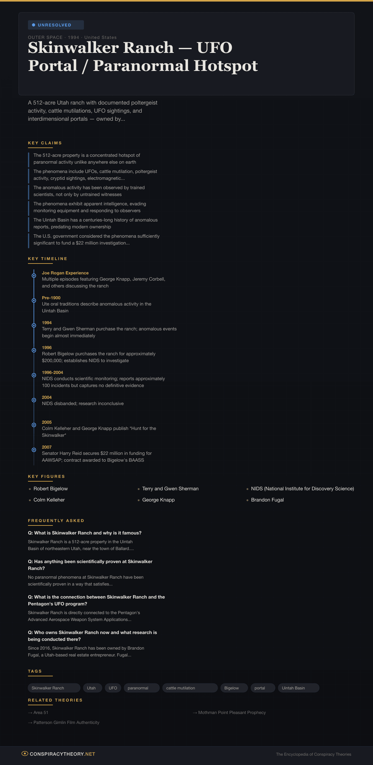 Skinwalker Ranch — UFO Portal / Paranormal Hotspot — Conspiracy Theory Timeline 1994, United States