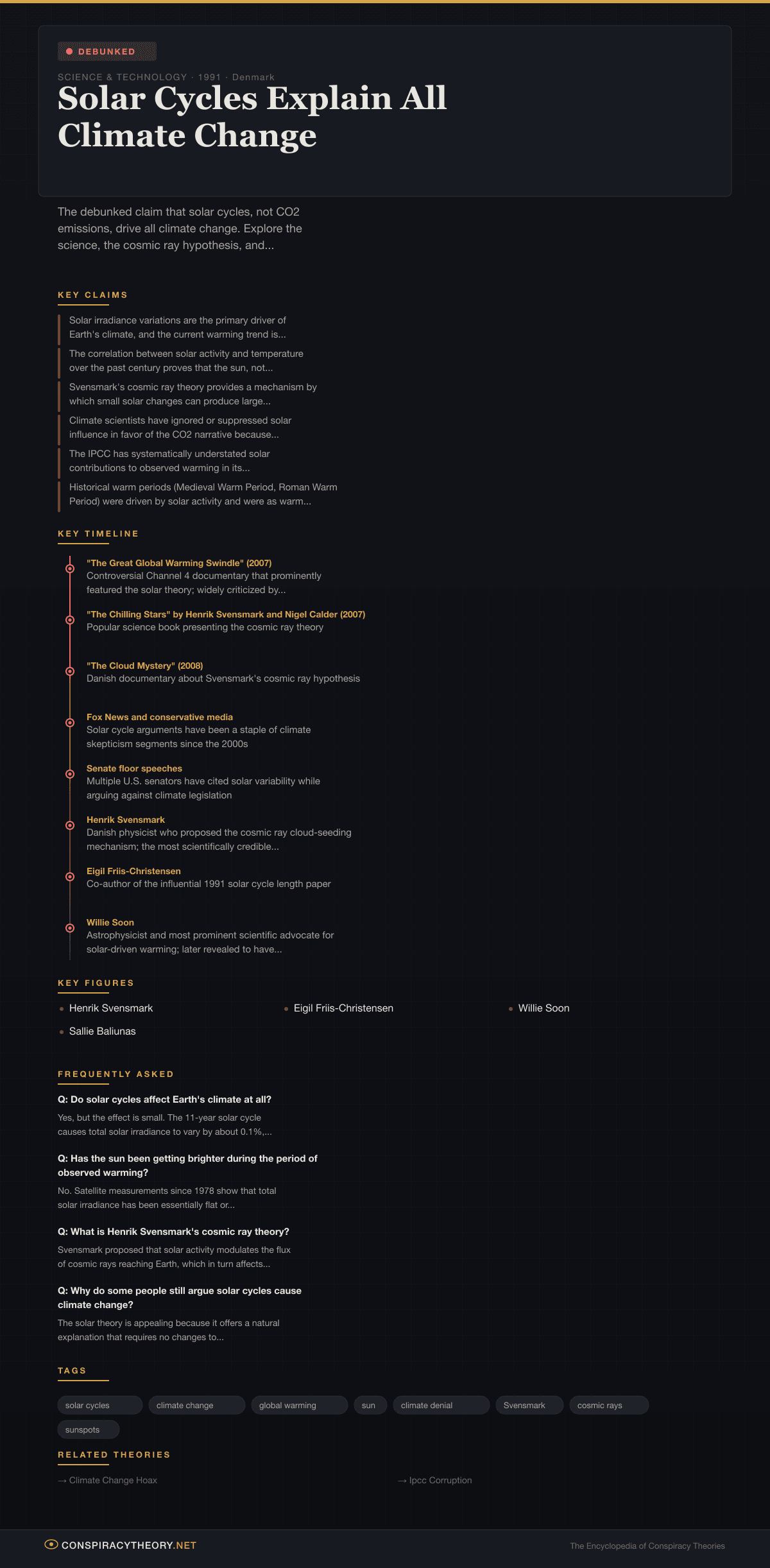 Solar Cycles Explain All Climate Change — visual timeline and key facts infographic