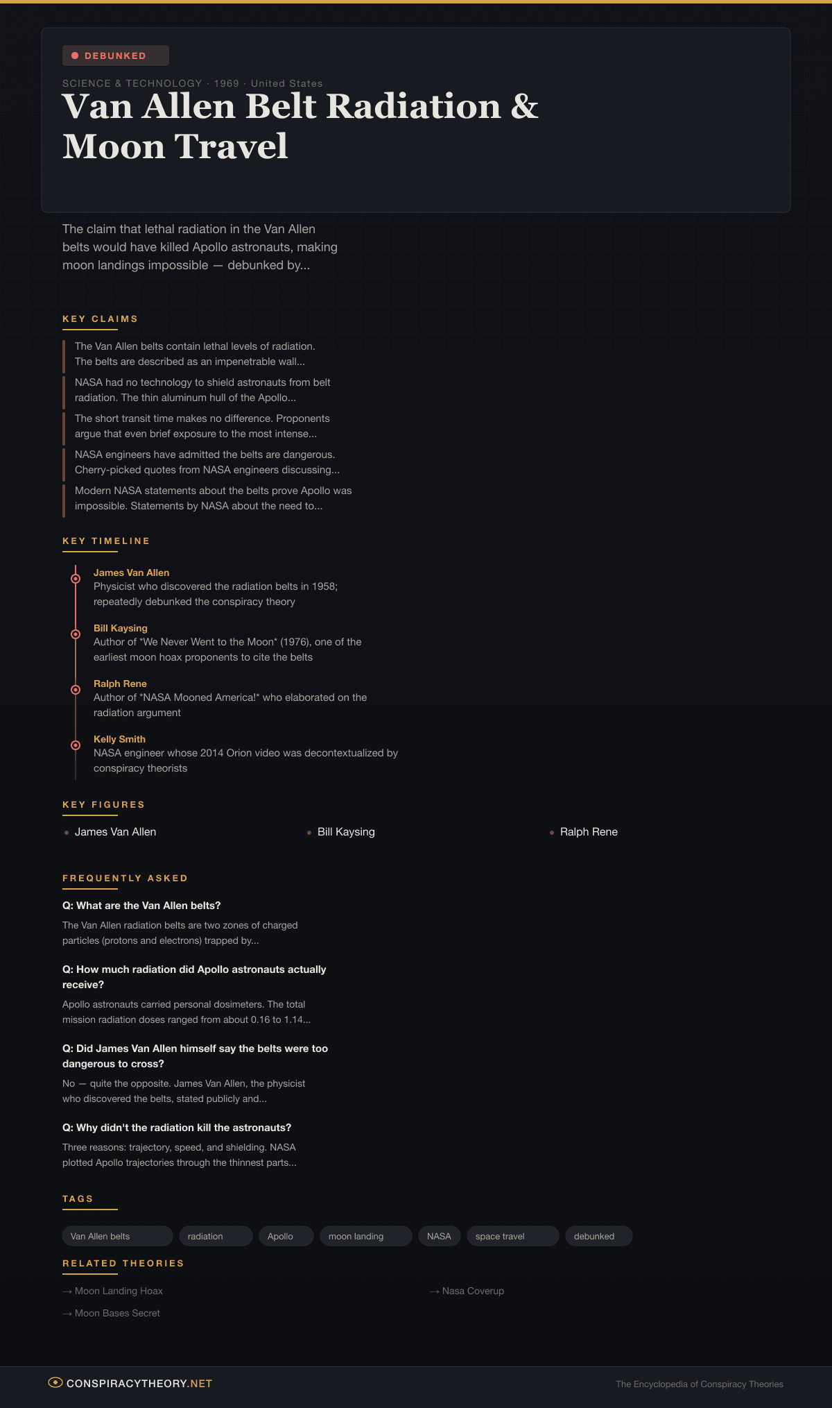 • Moon Landing Hoax — the broader conspiracy theory that the Van Allen argument supports