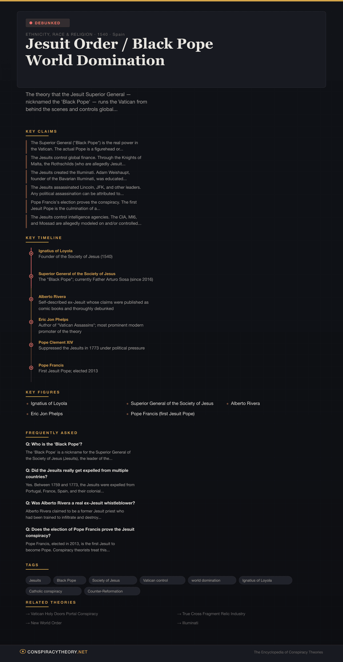 In the modern conspiracy ecosystem, the Jesuit theory occupies a niche — it is less popular than Illuminati or New World Order narratives but serves as a “deeper level” for conspiracy theorists who believe they have pierced behind the more common theories to find the “real” controllers.