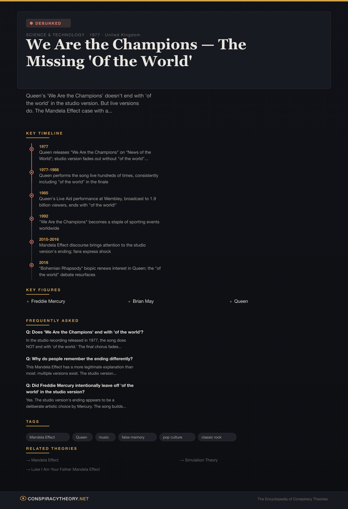 We Are the Champions — The Missing 'Of the World' — Conspiracy Theory Timeline 1977, United Kingdom