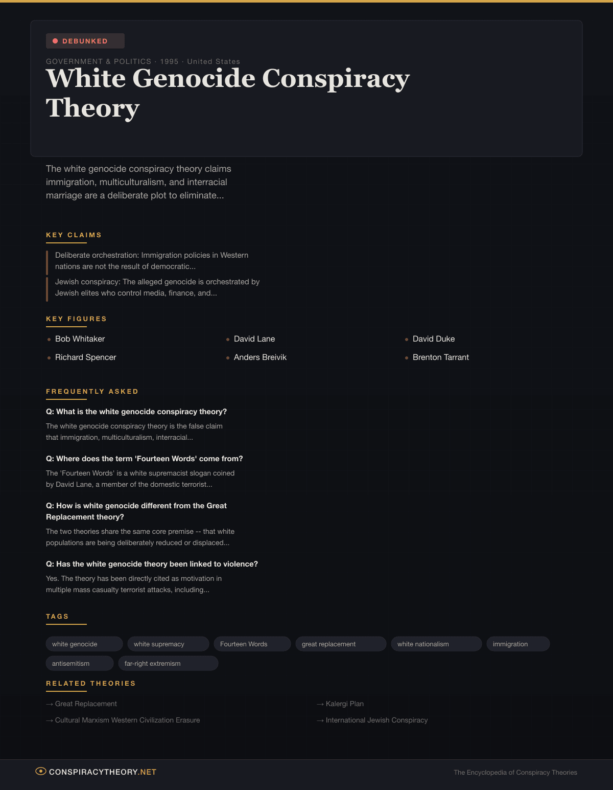 | 1990s | David Lane coins the “Fourteen Words” and frames demographic change as white genocide from prison |