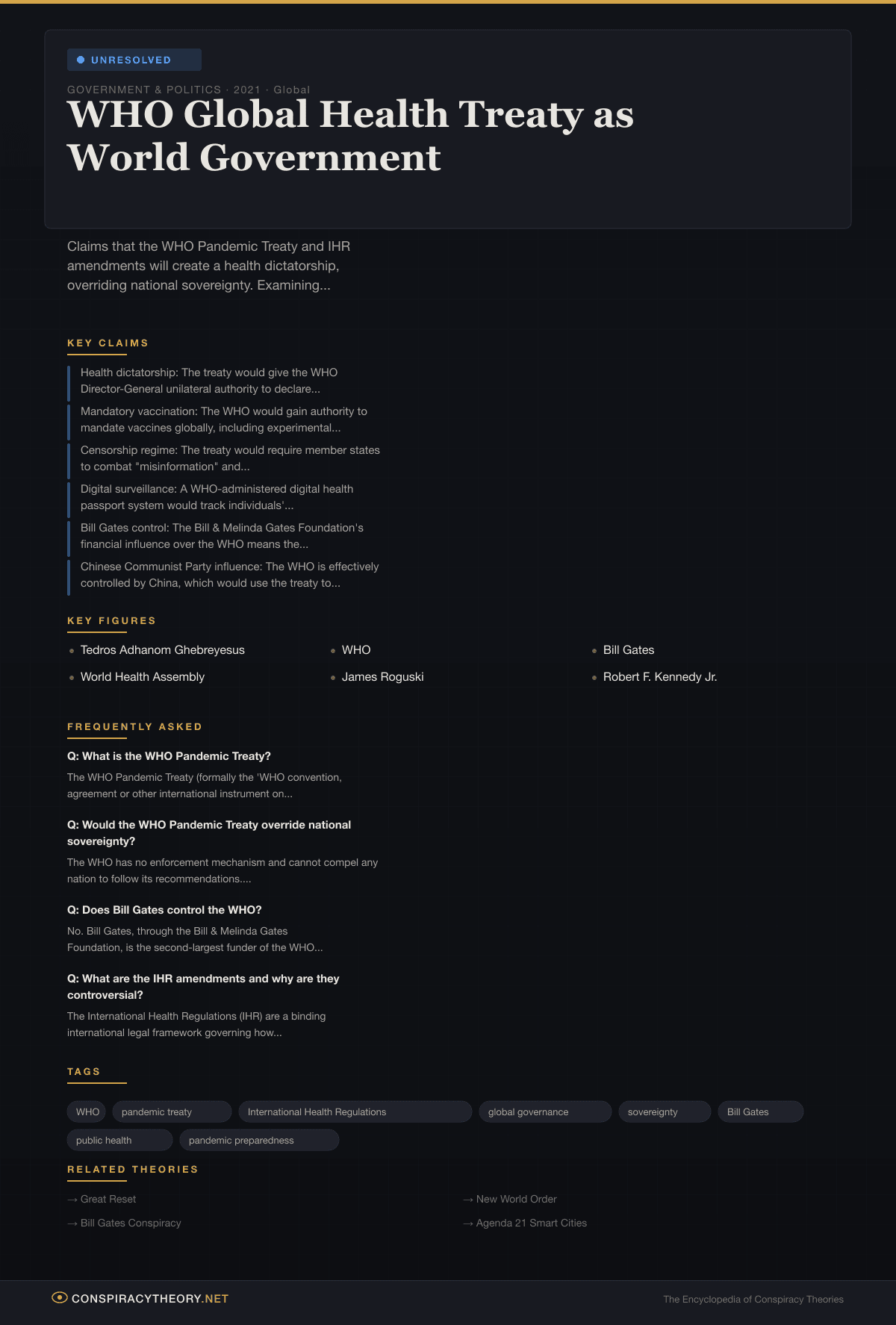 This article is classified as unresolved because the treaty negotiations remain ongoing, the final text has not been agreed upon, and legitimate concerns about the balance between global health coordination and national sovereignty coexist with conspiratorial claims that grossly misrepresent the WHO’s authority and intentions.